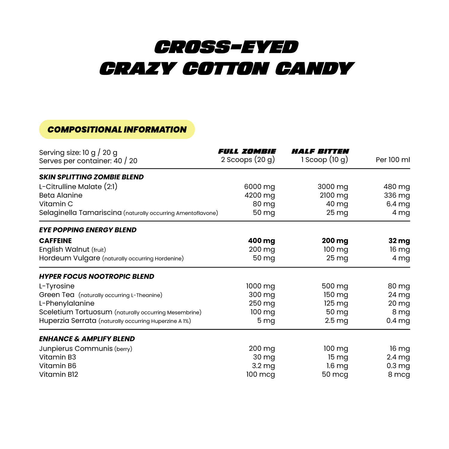 Cross-Eyed by Zombie Labs isn’t your average pre-workout—it’s a wake-up call for your body and mind. Engineered for those who refuse to settle for slow, boring workouts, this high-stimulant formula fuels energy, focus, and strength like nothing else.