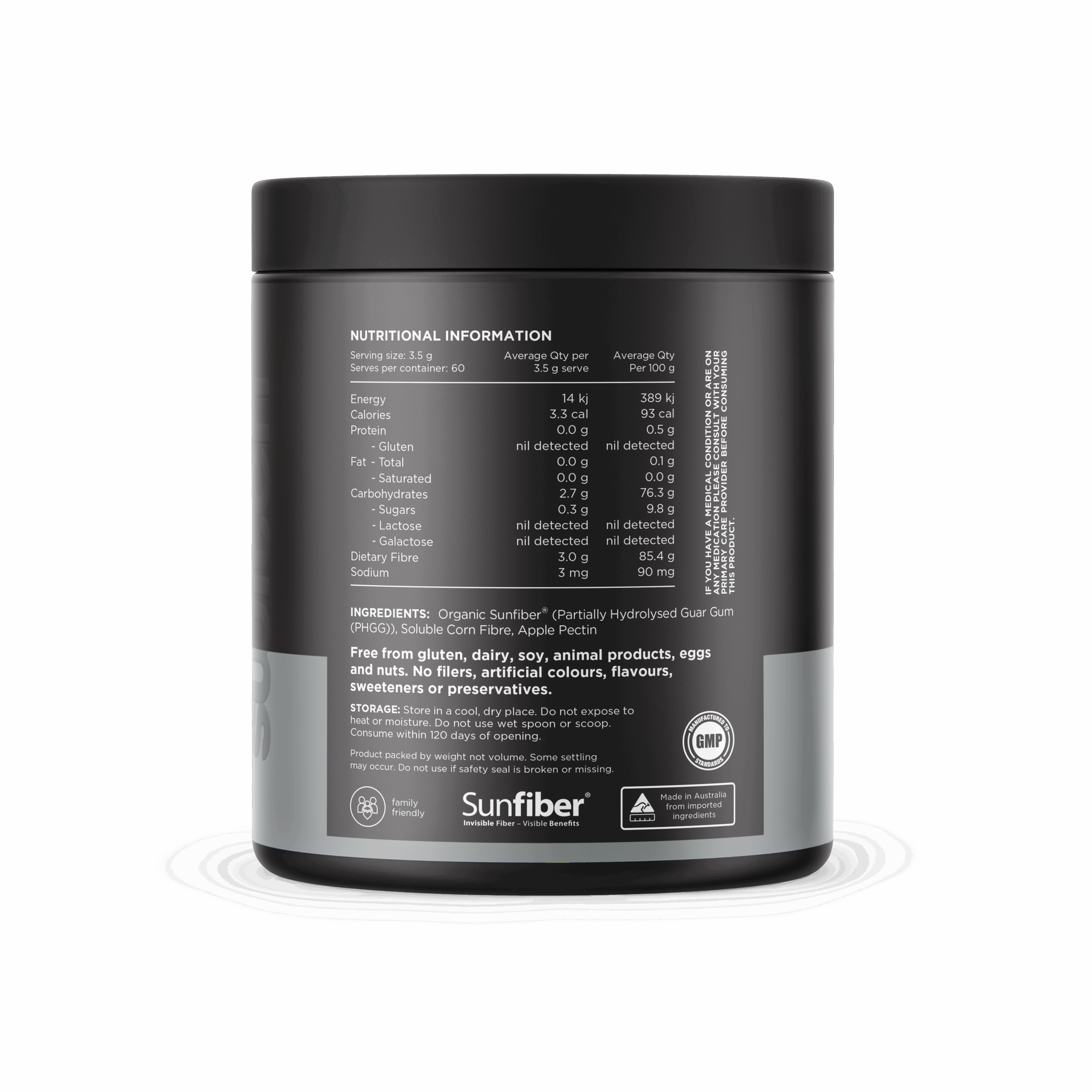 Featuring Organic Sunfiber® (PHGG), Apple Pectin, and Non-GMO Soluble Corn Fibre, this blend offers comprehensive support for your gut and immune health while helping you stay satisfied between meals.
